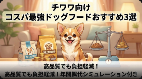 チワワ向けのコスパが良いドッグフードを徹底比較!1日100円台から始められる安くて高品質なフードを厳選。年間餌代シミュレーションや市販・通販別おすすめ、涙やけ・関節ケアなど悩み別の選び方まで解説します。 -