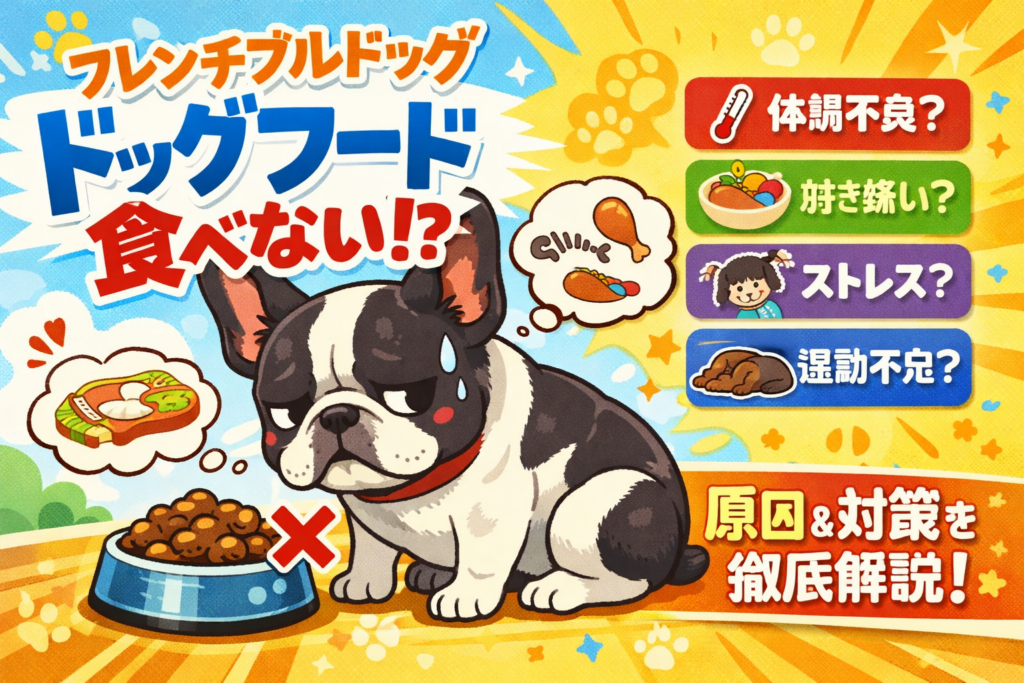 フレンチブルドッグがドッグフードを食べないとき、原因は「体調不良」「フードの好み」「ストレス」「わがまま」「運動不足」「食事環境」の6つに大別されます。本記事では、獣医師の知見やフレブルオーナーの実体験をもとに、年齢別・季節別の対処法とお... -
