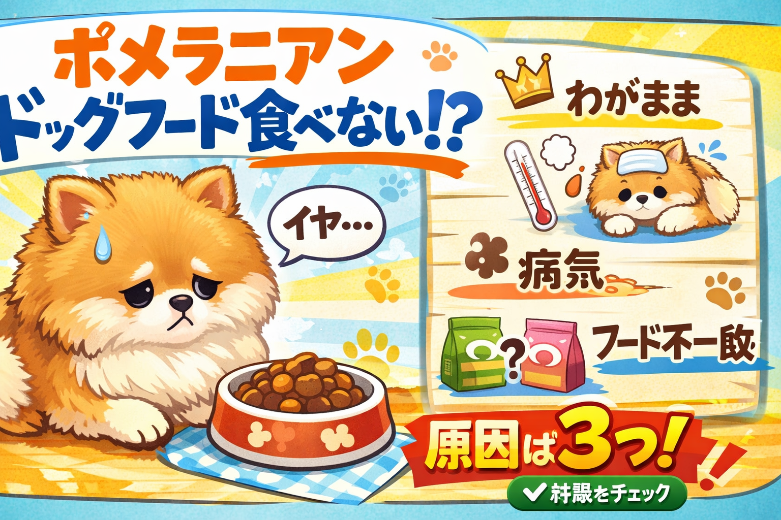 "name": "ポメラニアンがドッグフードを食べない7つの原因と今すぐできる対処法【2026年最新】",