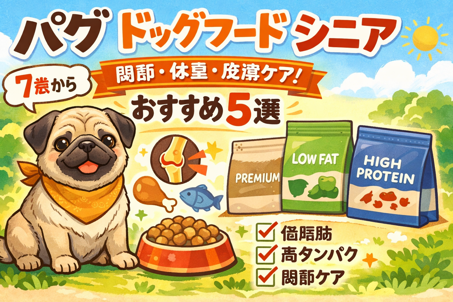 シニアパグに最適なドッグフードおすすめ5選|7歳からの関節・皮膚・体重管理に合った選び方と口コミを徹底解説【2026年最新】