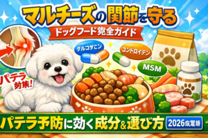 さらに、軟骨成分(グルコサミン・コンドロイチン)とメチルスルフォニルメタン(MSM)が配合されており、ダイエット中に懸念される関節への負担を内側からサポートしてくれます。体重が落ちていく過程でも、関節の健康を守る仕組みが整っているのは肥満気味のヨーキーにとって非常に心強いポイントです。