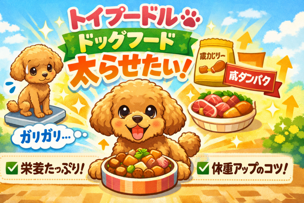 「うちのトイプードル、ちゃんと食べてるのにガリガリで心配…」「もう少し体重を増やしたいけど、何を食べさせたらいいの?」そんなお悩みを抱える飼い主さんに向けて、トイプードルの痩せすぎの原因から、健康的に体重を増やすためのドッグフードの選び方... -