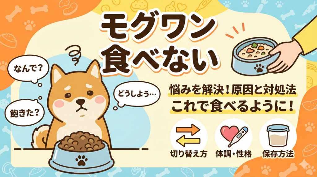 「せっかく愛犬のために選んだモグワンなのに、全然食べてくれない…」そんな悩みを抱える飼い主さんは少なくありません。結論からお伝えすると、モグワンを食べない原因は大きく分けて「フードの切り替え方」「犬の体調・性格」「保存方法による風味劣化」...