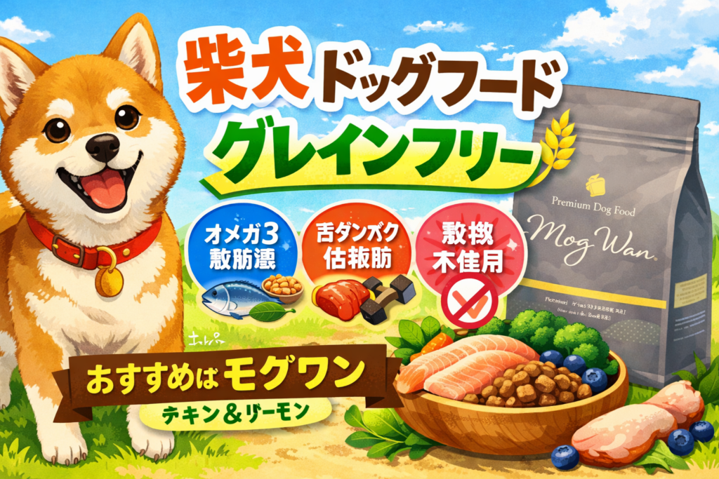 柴犬にグレインフリーのドッグフードを選ぶなら、皮膚・被毛の健康維持に必要なオメガ3脂肪酸が豊富で、高タンパク・低脂肪設計のフードが最適です。結論として、柴犬の体質に合ったグレインフリードッグフードの第一候補は「モグワン ドッグフード チキン... -