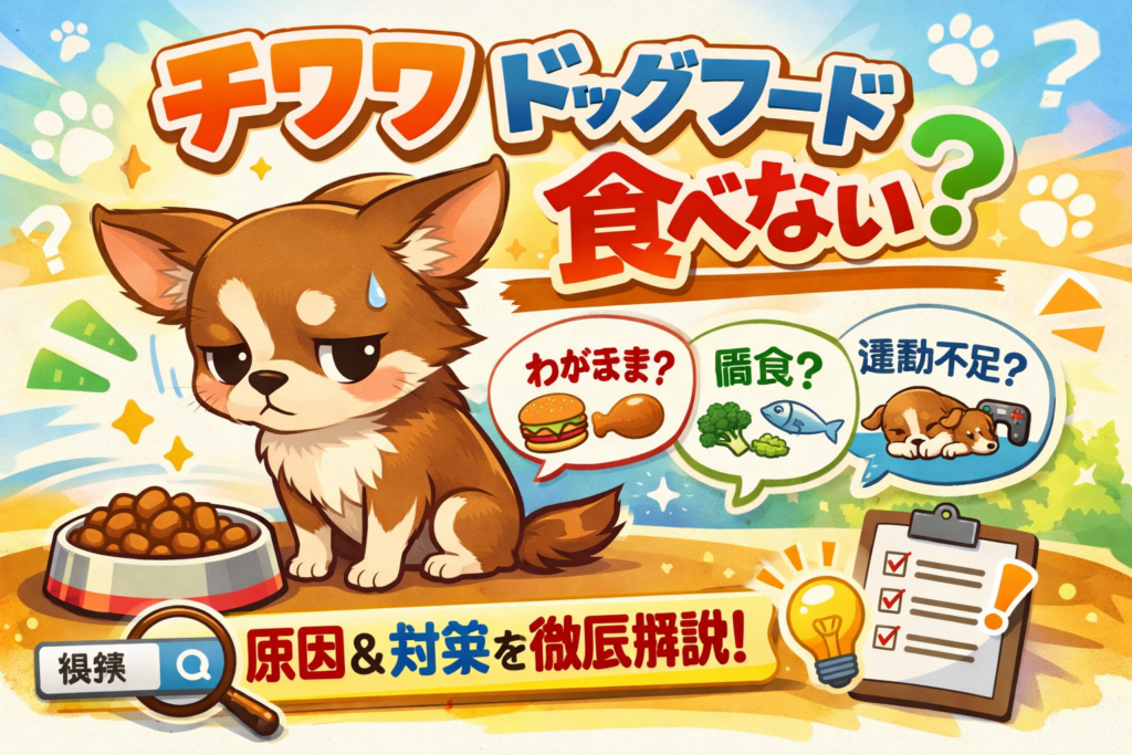この記事でわかること 確認日 2026年03月27日 対象キーワード チワワ ドッグフード 食べない 主な原因 わがまま・偏食・運動不足・病気・老化・環境ストレス・フードの嗜好性不足 こんな飼い主さんに チワワのごはんの食いつきが悪くて困っている方・フー... -