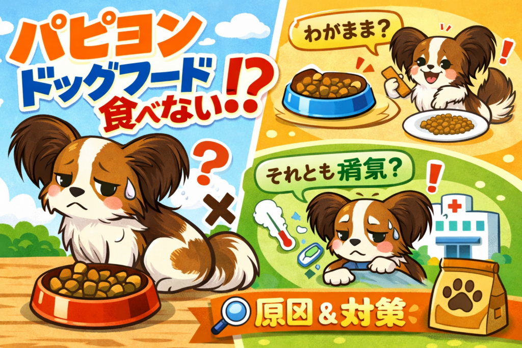 「パピヨンがドッグフードを急に食べなくなった…」「おやつは食べるのにご飯だけ残す…」そんな悩みを抱えている飼い主さんは少なくありません。結論から言うと、パピヨンは体が小さく食が細い犬種のため「わがまま・偏食」と「病気のサイン」を正しく見分... -
